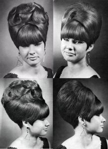 I never did wear the “hive.” That hairdo frightened me more than the Apollo 13 landing. I’d heard tales of horror about bugs burrowing and nesting in the ratted and sprayed coiffures.